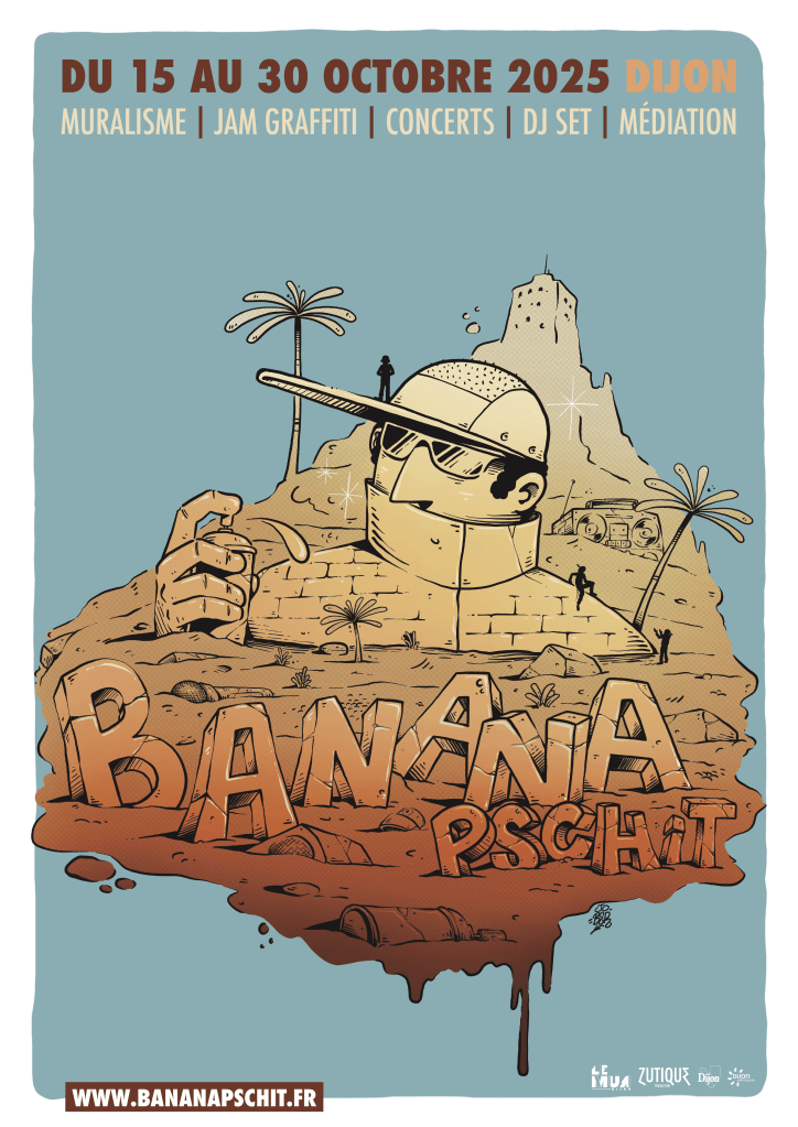 Le Banana Pschit Festival, ayant inscrit son nom dans l’agenda des évènements graffiti et street-art incontournables en France investira les rues de Dijon à l’automne pour le plus grand plaisir des habitant·e·s et amoureux et amoureuses des arts urbains.