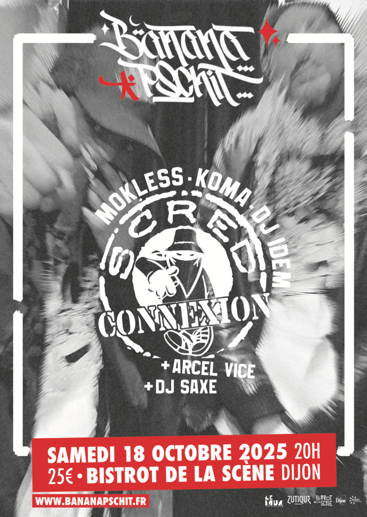 Collectif légendaire du rap français actif depuis les années 1990, la Scred Connexion ne cesse de nous faire aller de l’avant avec leur punchline mythique « jamais dans la tendance, toujours dans la bonne direction » devenu un véritable mantra pour toute une génération. Formé dans le 18e arrondissement de Paris par Fabe, Koma, Haroun, Mokless et Morad, le groupe est devenu l’un des piliers du rap conscient français. La Scred Connexion, discrète mais affutée, continue de faire résonner ses rimes acerbes et engagées qui ont marquées la scène hip hop française. Sur scène, Mokless & Koma seront accompagnés par DJ Idem, champion de France du DMC “open format” en 2024 !