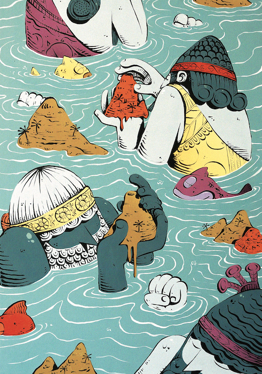 Par la vigueur de sa palette et l’humour qui traverse ses images, son œuvre s’inscrit dans une filiation où l’art populaire et le muralisme se croisent, rejoignant les recherches d’artistes contemporains tels qu’Andy J. Miller, avec qui il partage cette volonté de bâtir un univers poétique, singulier et immédiatement reconnaissable. Chaque déplacement de l’artiste devient ainsi une occasion de disséminer ses fragments visuels, comme des invitations à réenchanter le quotidien, dans une esthétique qui flirte autant avec le jeu graphique qu’avec une tradition de l’imaginaire urbain héritée du XXe siècle.