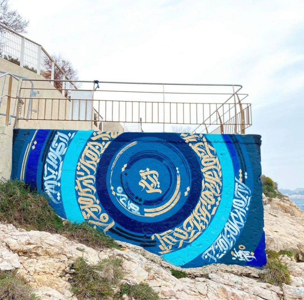 Basé à Marseille, Nitram Joke met la calligraphie au cœur de ses recherches : mouvements, structures, significations révisitées, lettres et abstractions géométriques fondent l’ensemble de ses créations.