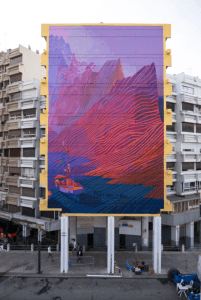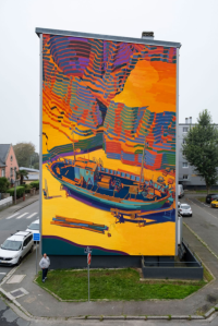 Matthieu Pommier commence à peindre des murs au début des années 2000 dans l’ouest de la France. L’univers maritime et industriel qu’il y côtoie imprègne alors ses premières recherches artistiques. Dessinateur passionné, il s’oriente naturellement vers les arts appliqués, parallèlement à une pratique assidue du graffiti. Il quittera peu à peu l’aérosol pour la peinture acrylique et l’huile, qui lui permettent une plus grande maîtrise des couleurs et donnent à ses images un aspect plus proche de ses attentes, sur mur comme en atelier. Dans ses sujets, Matthieu Pommier associe ses souvenirs et son histoire personnelle à une observation rigoureuse de ce qui l’entoure, pour créer un monde onirique.Auteur de nombreux muraux d’envergure et d’expositions en France comme à l’étranger, il vit et travaille aujourd’hui à Bordeaux.